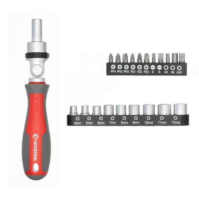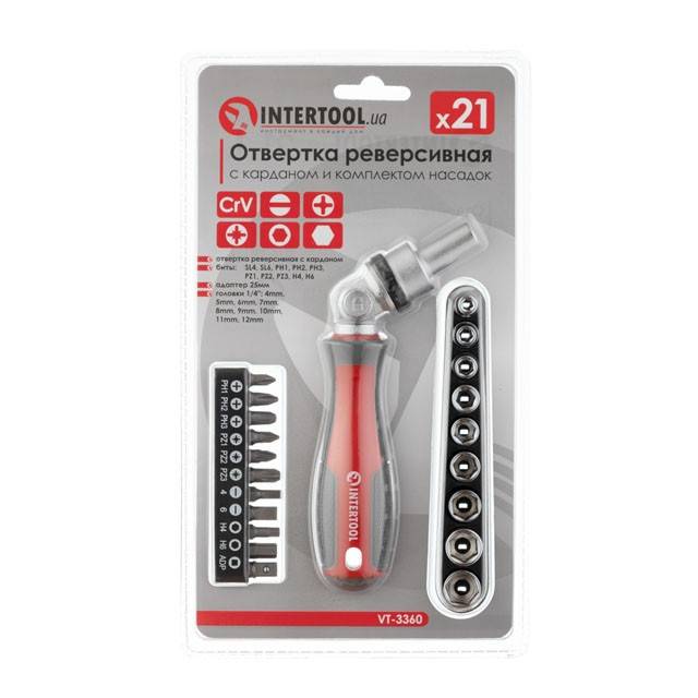 Викрутка з комплектом насадок та головок INTERTOOL VT-3360 виготовлена за останніми технологіями і відповідає вибагливим запитам майстрів. Призначена для монтажу та демонтажу різьбових з'єднань різних типів. Така реверсивна викрутка стане відмінним помічником в домашньому арсеналі інструменту, а також в персональній майстерні, на виробництві.