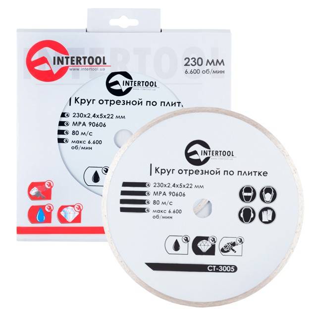 Диск діаметром 230 мм створений для ефективного різання різноманітних матеріалів, таких як плитка, камінь, цегла та інших твердих поверхонь. Виготовлений з високоякісного алмазного матеріалу, має високу міцність і довговічність, що робить його ідеальним інструментом для різноманітних будівельних і ремонтних робіт. Призначений для використання з кутовими шліфмашинами (болгарками) з високою швидкістю обертання - до 6600 об/хв.