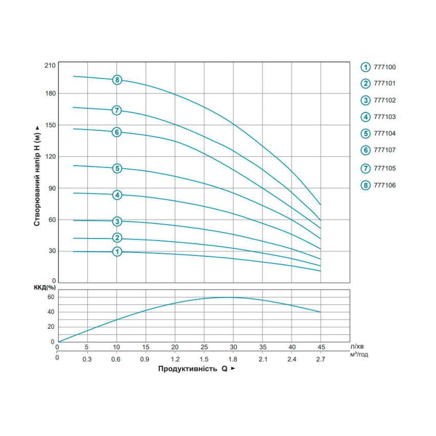 Насос відцентровий свердловинний 0.75кВт H 111(85)м Q 45(30)л/хв Ø80мм AQUATICA (DONGYIN) (777104) Насоси серії установка кожуха охолодження), для перекачування води в резервуари, для зрошувальних систем, для автоматичної подачі води разом із невеликими резервуарами під час використання керуючої автоматики (керуючі реле, контролери тиску). Насосна частина: Корпус насосної частини: нержавіюча сталь AISI 304; Вихідний фланець: латунь; Вал насосної частини: нержавіюча сталь AISI 304; Муфта валу: нержавіюча сталь AISI 304; Робоче колесо: технополімер; Шайба фасонна роздільна: технополімер; Дифузор: технополімер. Електродвигун: Тип двигуна: асинхронний, маслонаповнений, з вбудованим в обмотку термозахистом; Обмотка статора: мідь; Корпус електродвигуна: нержавіюча сталь AISI 304; Вал двигуна: нержавіюча сталь; Механічне ущільнення: кераміка/графіт; Підшипник: кочення (C