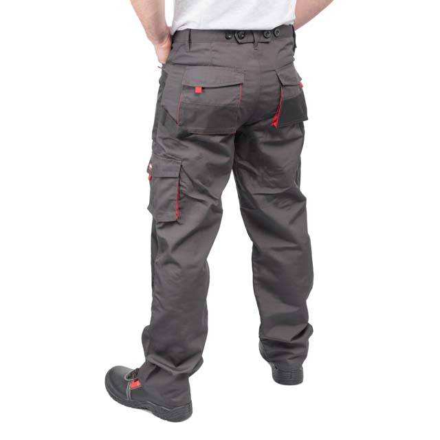 Робочі брюки темно-сірого кольору виготовлені з міцної тканини: 80% поліестер і 20% бавовна зі щільністю 260 г/м². Наявність великої кількості кишень дозволяє розвантажити руки і забезпечує швидкий доступ до підручного інструменту.
