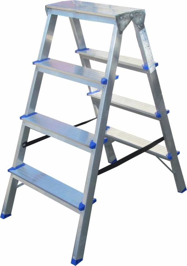 Алюмінієва двостороння стремянка, дуже легка та стабільна для домашнього використання, швидко розкладається. Діапазон висот – 2-7сходинок (2,6- 3,1м). Стремянка має протиковзкі полімерні упори, рельєфні сходинки та площадку у верхній частині.