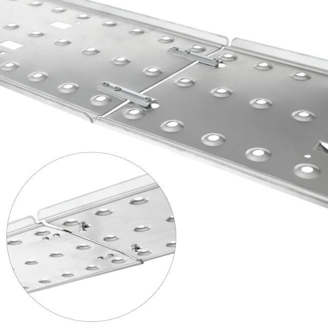 Виготовлена з високоякісної сталі, має стійке покриття та перфоровану поверхню, що не ковзає, витримує будь-які навантаження до 150 кг. Забезпечує безпечне та зручне використання драбини-трансформера.