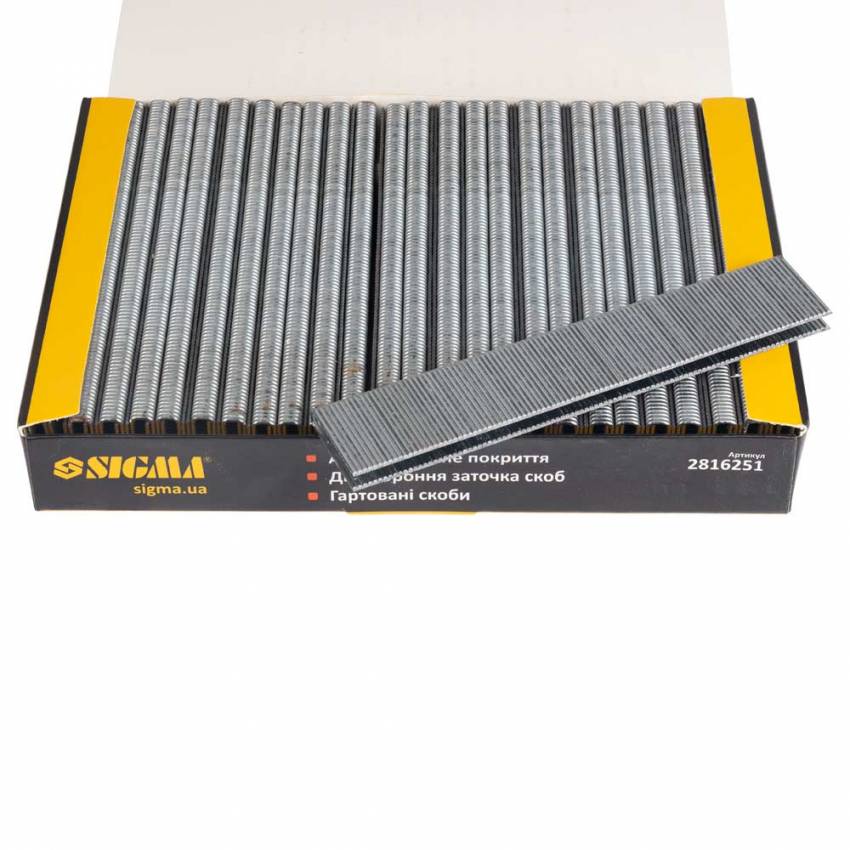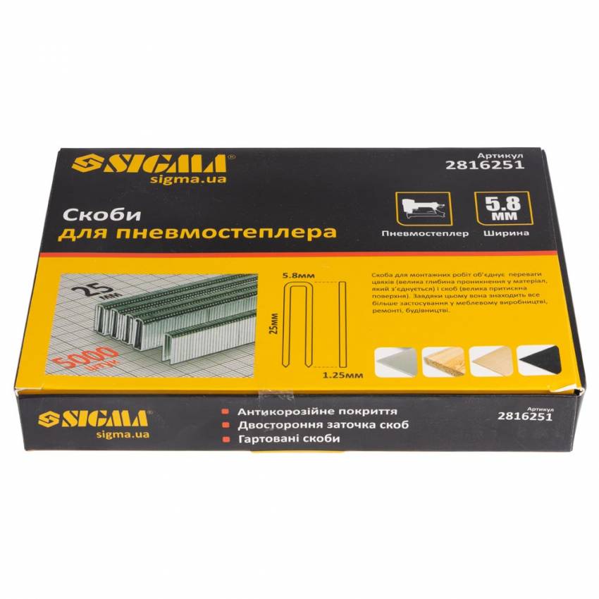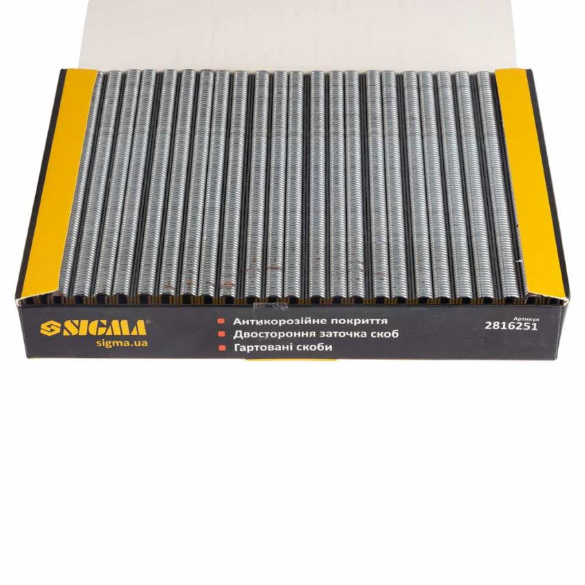 Скоби 25*5.8мм для пневмостеплера 5000шт Sigma (2816251) для монтажних робіт поєднує в собі переваги цвяхів (велика глибина проникнення в матеріал) і скоб (велика притискна поверхня). Завдяки цьому вона знаходить все більше застосування у меблевому виробництві, ремонті, будівництві. Особливості: Висота – 25 мм; Ширина – 5.8 мм; Дріт – 1х1.25 мм Кількість в упаковці – 5000 шт. Купити скоби для пневмостеплера Sigma Ви можете оформивши замовлення в нашому інтернет-магазині за допомогою простої форми, доставка здійснюється по всій Україні. Якщо у Вас виникли запитання, Ви можете зателефонувати за вказаними номерами або замовити зворотній дзвінок. Спеціалісти нашого інтернет-магазину нададуть Вам детальні консультації та допоможуть зробити правильний вибір.