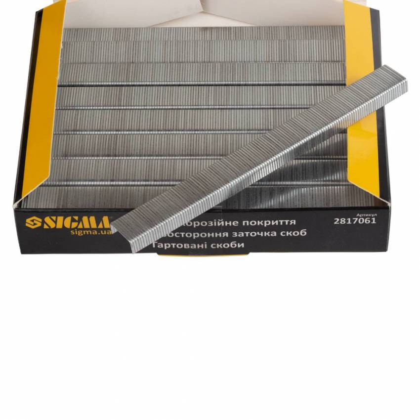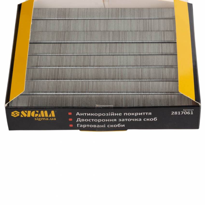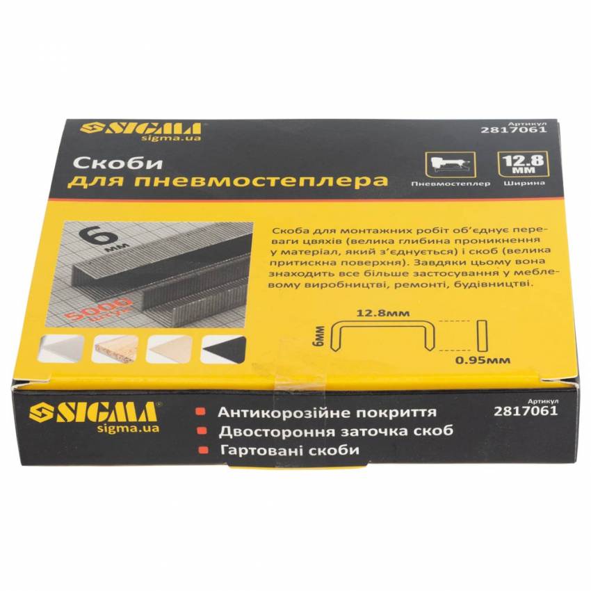 Скоби 6*12,8мм для пневмостеплера 5000шт Sigma (2817061) - найбільш поширений тип оббивних скоб для пневмостеплера. Використовуються для оббивки меблів, а також у будівництві та ремонті для надійного кріплення до основи фанери, пластиков, тканих і нетканих матеріалів і т.д. Особливості: Висота – 6 мм; Ширина – 12.8 мм; Дріт – 0.65 х 0.95 мм; Кількість в упаковці – 5000 шт. Купити скоби для пневмостеплера Sigma Ви можете оформивши замовлення в нашому інтернет-магазині за допомогою простої форми, доставка здійснюється по всій Україні. Якщо у Вас виникли запитання, Ви можете зателефонувати за вказаними номерами або замовити зворотній дзвінок. Спеціалісти нашого інтернет-магазину нададуть Вам детальні консультації та допоможуть зробити правильний вибір.