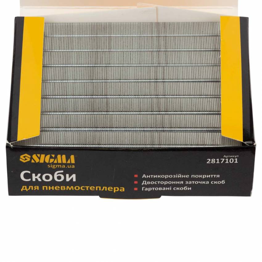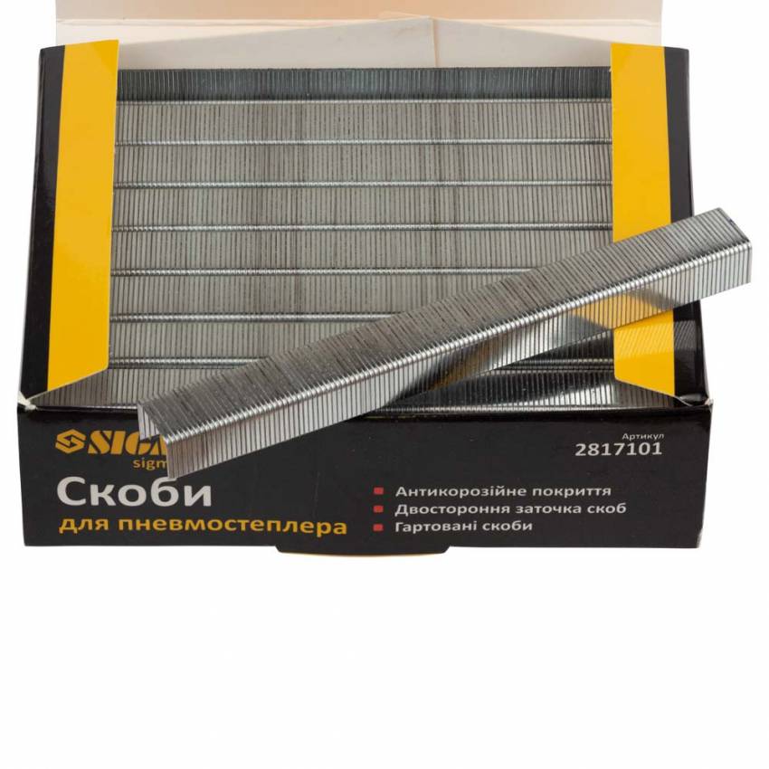 Скоби 10*12.8мм для пневмостеплера 5000шт Sigma (2817101) - найбільш поширений тип оббивних скоб Sigma для пневмостеплера. Використовуються для оббивки меблів, а також у будівництві та ремонті для надійного кріплення до несучої основи фанери, пластиків, тканих та нетканих матеріалів тощо. Особливості: Висота – 10 мм; Ширина – 12.8 мм; Дріт – 0.65 х 0.95 мм; Кількість в упаковці – 5000 шт. Купити скоби для пневмостеплера Sigma Ви можете оформивши замовлення в нашому інтернет-магазині за допомогою простої форми, доставка здійснюється по всій Україні. Якщо у Вас виникли запитання, Ви можете зателефонувати за вказаними номерами або замовити зворотній дзвінок. Спеціалісти нашого інтернет-магазину нададуть Вам детальні консультації та допоможуть зробити правильний вибір.