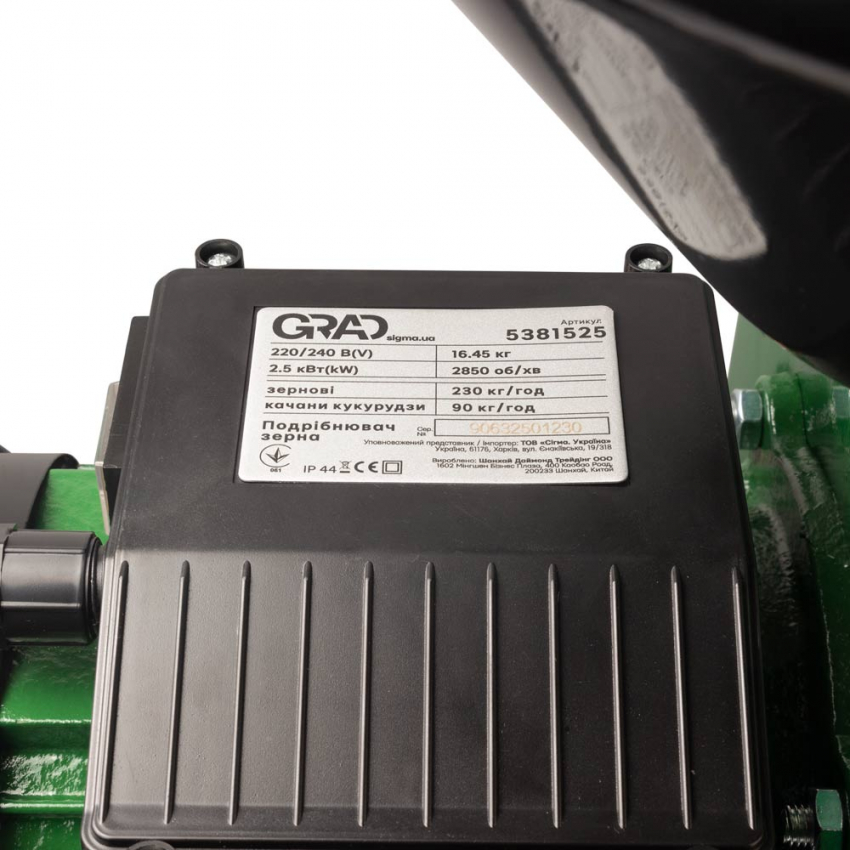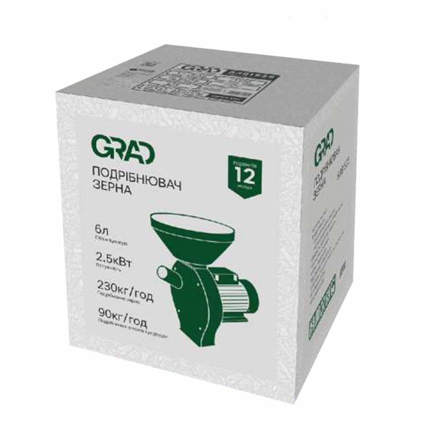 <b>Подрібнювач зерна 2.5кВт до 230 кг/год зернові, початки GRAD (5381525)</b> призначений для подрібнення зерна та качанів кукурудзи у домашньому птахівництві та тваринництві.
