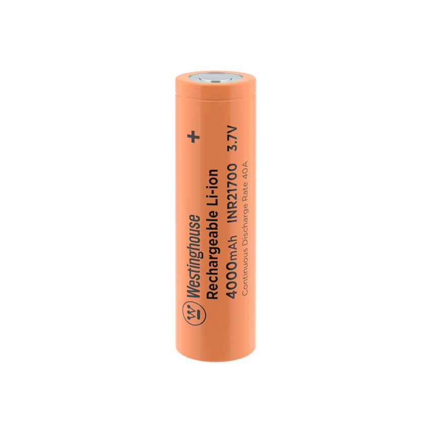 Високострумовий акумулятор Li-ion INR21700, 3.7 В ємністю 4000 мАгод від однієї з провідних електротехнічних компаній США Westinghouse. Ця акумуляторна батарея використовується для забезпечення працездатності портативних пристроїв різного призначення з максимальним споживанням струму до 40А, зокрема в електроінструментах, потужних ліхтарях, електронних цигарках, дронах тощо. Акумулятор має тривалий термін роботи та зберігає свої властивості в екстремальних умовах із кількістю циклів перезаряджання понад 500. Завдяки високій щільності струму забезпечує гарантовану стабільну напругу впродовж циклу розряджання, одночасно має низький саморозряд 5-7%. Без 'ефекту пам'яті', що дає можливість заряджати його без попереднього розряджання. Не можна використовувати в приладах без захисту від перерозрядження. Перед першим використанням — зарядити до повної ємності. Упакований в плівку по 1 шт.