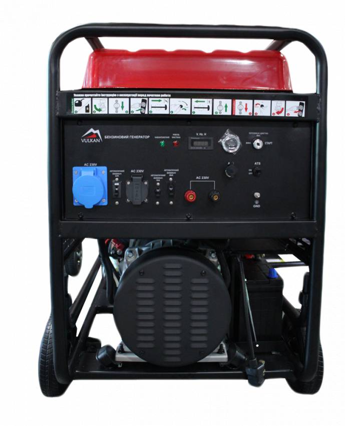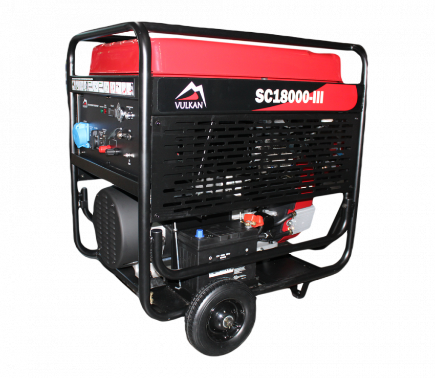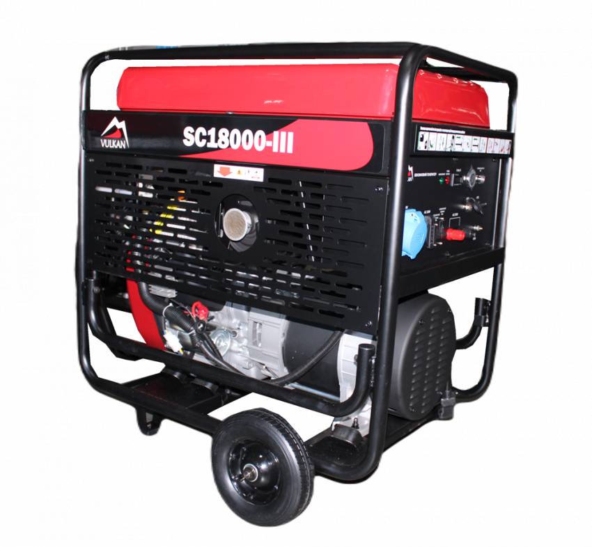 Генератор бензиновий ТМ Vulkan SC18000-III з потужним 2-х циліндровим, 4-х тактний двигуном GB1000 внутрішнього згоряння, з верхнім розміщенням паливним баком на 45л, якого вистачає на тривалий період роботи. Система стабілізації напруги забезпечує надійне живлення для чутливих електричних приладів, техніки, комп'ютерів, при малих та великих навантаженнях, протягом усього строку експлуатації генератора. Модель SC18000-III підходить для 1-но фазного використання. Присутнє автоматичне регулювання напруги, датчик автоматичного захисту двигуна при низькому рівні мастила. Автоматичний вимикач зупиняє двигун при перевантаженні. Вид палива використовується бензин марки А-95. Дана модель має 2 ряди коліс+рукоять, наявність яких забезпечує транспортування та переміщення, міцний каркас для захисту елементів генератора, високоякісний альтернатор THD<5% з подовженим строком експлуатації. Модель SC18000-III відрізняється збільшенним баком. Постійно контроль якості деталей і вдосконалені технології роблять Вулкан SC18000-III, надійним і довговічним.