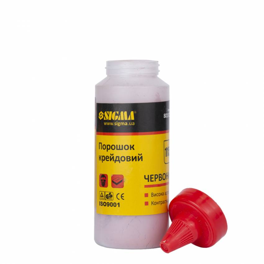 Крейдовий порошок Sigma для виконання добре видимої та стійкої розмітки рекомендуємо користуватися крейдним порошком. Даний порошок відмінно підійде для використання при виконанні зовнішніх робіт, що відрізняється адгезією і насиченим кольором, при цьому перевагою даного товару є стійкість до атмосферних впливів і слабка розчинність у воді, що дозволяє забезпечити повноцінне використання навіть у негоду.