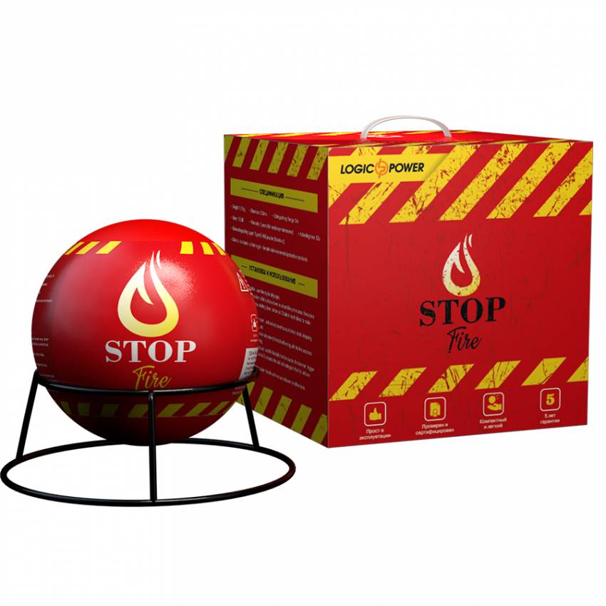 Автоматичний самоспрацьовуючий пристрій пожежогасіння призначений для усунення вогню при спалахах твердих, рідких і газоподібних речовин, а також при горінні електроустановок та електрообладнання, що знаходяться під напругою. Конструкція: корпус, виготовлений з пінопласту, наповнений спеціальним порошком для гасіння пожеж. На гранях корпусу розташовані два піромотузка, які при контакті з вогнем активують викид порошку. Принцип дії: пристрій спрацьовує при попаданні в осередок займання. Розкривати та натискати нічого не потрібно. Достатньо просто кинути сферу LogicPower Fire Stop S9.0M в вогонь. Через 2 секунди після потрапляння у вогонь лунає звук потужністю 120 дБ (додатковий сигнал про займання), пристрій спрацьовує і вогнище покривається шаром порошку. Увага! Пристрій не замінює обов'язкової наявності вогнегасника та інших засобів пожежної безпеки!