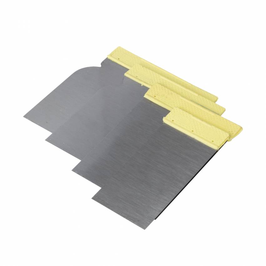 Набір шпателів Sigma без рукоятки 8321561 - 50, 80, 100, 120 мм. Шпателя використовуються для оштукатурювання зовнішніх і внутрішніх стін, стель. Для нанесення шпаклівок, мастик та густих клейових сумішей. Переваги: Вуглецева сталь. Купити шпатель Sigma Ви можете оформивши замовлення в нашому інтернет-магазині за допомогою простої форми, доставка здійснюється по всій Україні. Якщо у Вас виникли запитання, Ви можете зателефонувати за вказаними номерами або замовити зворотній дзвінок. Спеціалісти нашого інтернет-магазину нададуть Вам детальні консультації та допоможуть зробити правильний вибір.