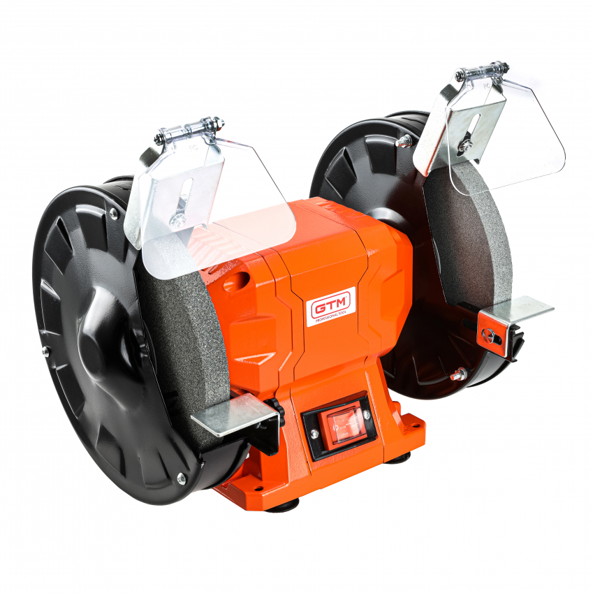 Точильний верстат NBG-200F TM Vulkan - це надійний інструмент для заточування і шліфування виробів з матеріалів різної щільності. Використовується для сухого заточення ножів, доліт, стамесок та інших металевих і не металевих виробів з інших матеріалів. Точильний верстат з встановленим на нього асинхронним двигуном з номінальною потужністю 250 Вт., який не потребує додаткового обслуговування, відрізняється низьким рівнем шуму і вібрацій за рахунок використання якісних підшипників. Для зручності користувача модель оснащена прозорими відбивачами, що захищають очі від іскор і стружки. Даний верстат має міцні захисні кожухи з алюмінієвого литва під тиском і пилозахищений аварійний вимикач на передній стінці корпуса. Точильний верстат простий в обслуговуванні має низьку вагу (9,5 кг) і невеликі габарити (372х285х265 мм).