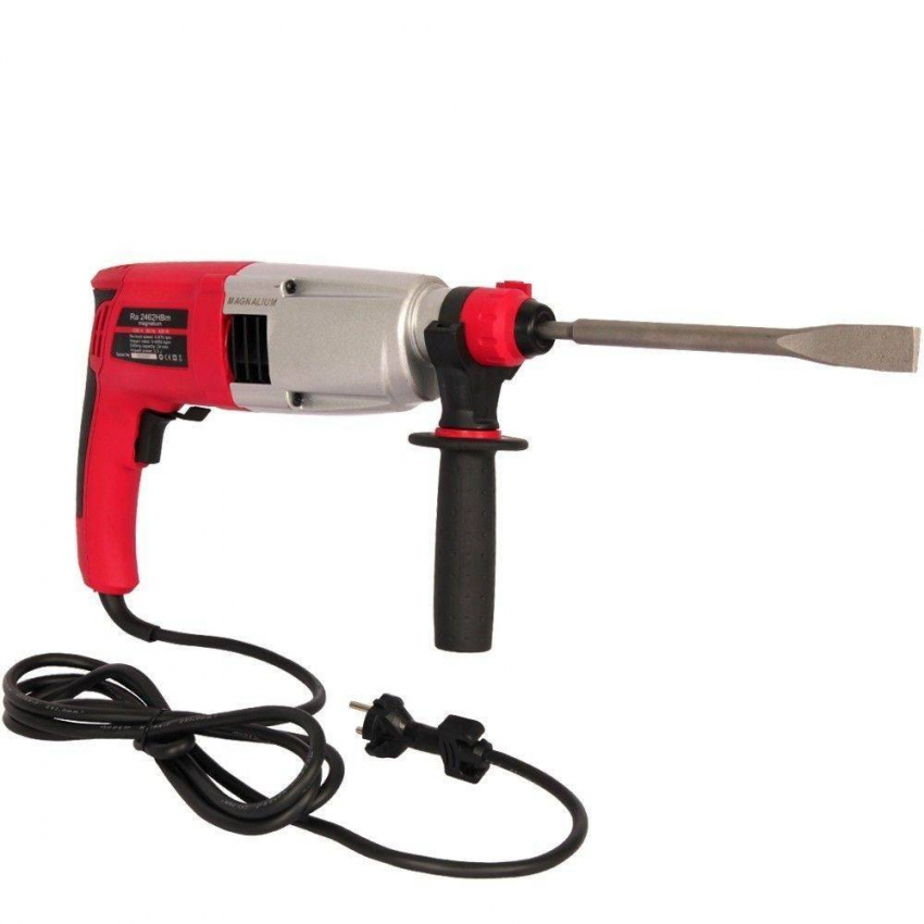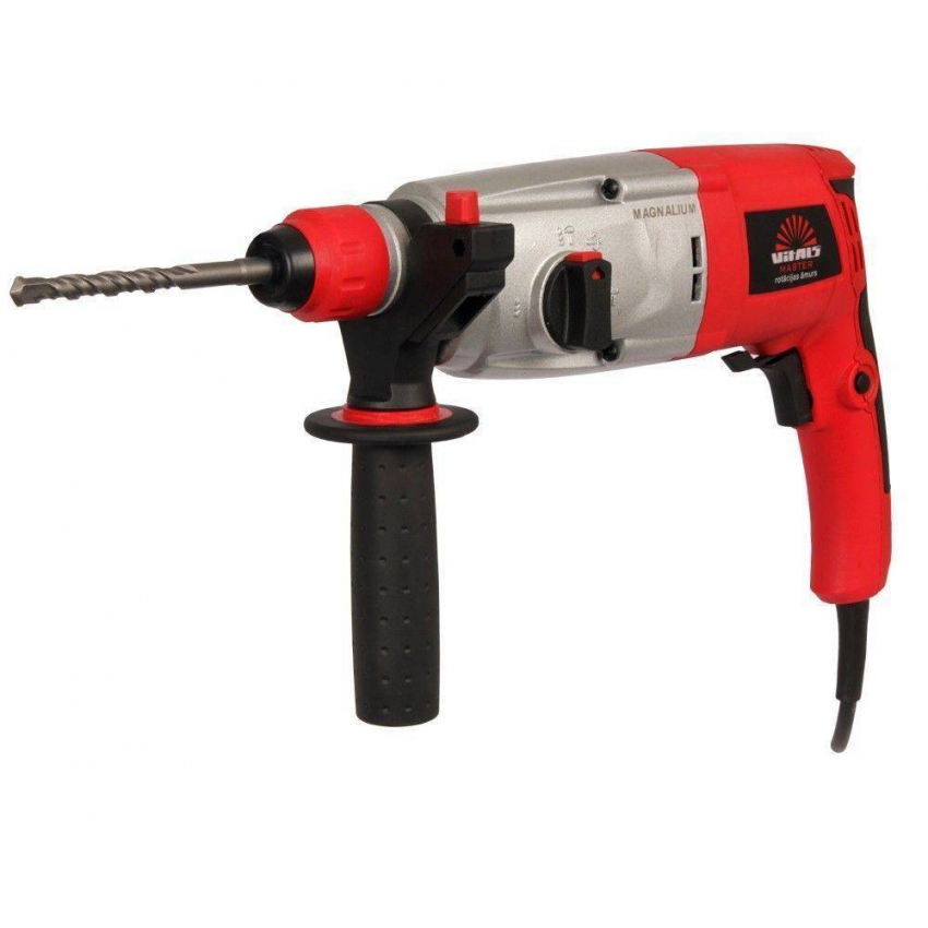 Опис Компактний електричний перфоратор Vitals Master Ra 2462HBm magnalium призначений для швидкого та ефективного виконання важких ремонтно-будівельних робіт: свердління отворів з ударною дією в цеглі, бетоні, природному камені, асфальті; довбання, розколювання та розпушування не дуже міцних матеріалів - бетонних та цегляних конструкцій, асфальту, осадових гірських порід; свердління отворів без ударної дії в металі, деревині, кераміці та різних синтетичних матеріалах; закручування та відкручування кріпильних виробів (шурупів, гвинтів, саморізів, конфірматів, дюбелів, болтів та гайок) із застосуванням спеціальних насадок. Перфоратор Vitals Master Ra 2462HBm magnalium є дуже легким, але в той же час - продуктивним будівельним інструментом (3,1 кг). Відмінною особливістю перфоратора Vitals Master Ra 2462HBm magnalium є дуже мала потужність (620 Вт) і достатня для ефективної роботи сила удару (2,3 Дж). Ця модель має чотири режими роботи: свердління з ударом, свердління без удару, удар без обертання та зміна положення робочого інструменту. Частота ударів регулюється в межах 0-4850 1/хв, що дозволяє акуратно робити отвори в різних структурах матеріалах, включаючи і в найбільш делікатних. Швидкість оборотів шпинделя при цьому можна встановлювати в діапазоні від 0 до 870 об/хв. Максимальний діаметр свердління залежить від матеріалу, що обробляється: дерево