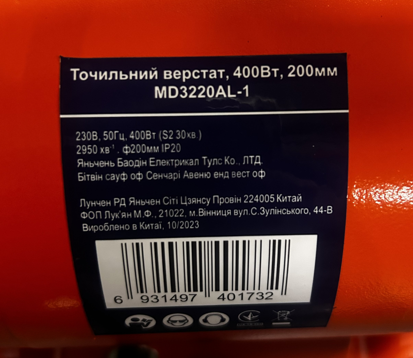 Точильний верстат MD3220AL-1 TM Vulkan - це надійний інструмент для заточування і шліфування виробів з матеріалів різної щільності. Використовується для сухого заточення ножів, доліт, стамесок та інших металевих і не металевих виробів з інших матеріалів. Точильний верстат з встановленим на нього асинхронним двигуном з номінальною потужністю 400 Вт., який не потребує додаткового обслуговування, відрізняється низьким рівнем шуму і вібрацій за рахунок використання якісних підшипників. Для зручності користувача модель оснащена прозорими відбивачами, що захищають очі від іскор і стружки. Даний верстат має міцні захисні кожухи з алюмінієвого литва під тиском і пилозахищений аварійний вимикач на передній стінці корпуса. Точильний верстат простий в обслуговуванні має вагу 11 кг.