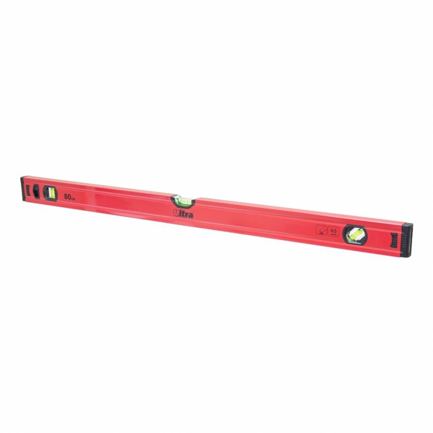 Рівень Ultra має алюмінієвий корпус коробчатого перетину. Оснащений трьома ампулами з покращеним оглядом. Фрезерована робоча поверхня. Зручний для чищення корпус. Похибка/- 0,5 мм/м.