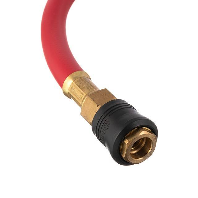 Шланг легко підключається до системи за допомогою швидкороз'ємних з'єднань європейського типу, вони герметичні та дозволяють швидко під’єднати пневмоінструмент до компресора. Виготовлені з'єднання з латуні, мають ряд переваг перед сталевими фітингами. Характеризуються кращою стійкістю до корозії, мають більший строк експлуатації, довговічніші.