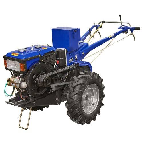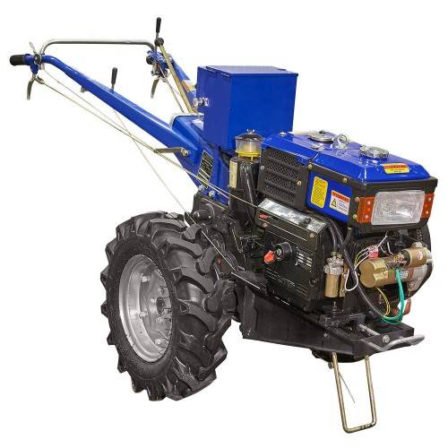 Моделі з індексом «Д» мають тільки ручний запуск двигуна. Моделі з індексом «ДЕ» оснащені електростартером, що значно спрощує запуск, особливо за низької температури довкілля. Крім електростартера до комплекту електрообладнання входить акумуляторна батарея, замок запалювання, амперметр і вимикач маси. Розміщується електрообладнання в міцному металевому боксі, встановленому на кермі мотоблока. Мотоблоки з ручним запуском можна самостійно дообладнати та встановити на них електростартер. Однак така операція потребує не тільки додаткових фінансових вкладень на придбання комплектувальних елементів, зокрема на заміну маховика, але й достатню технічну кваліфікацію установника,оскільки необхідне часткове розбирання мотоблока.