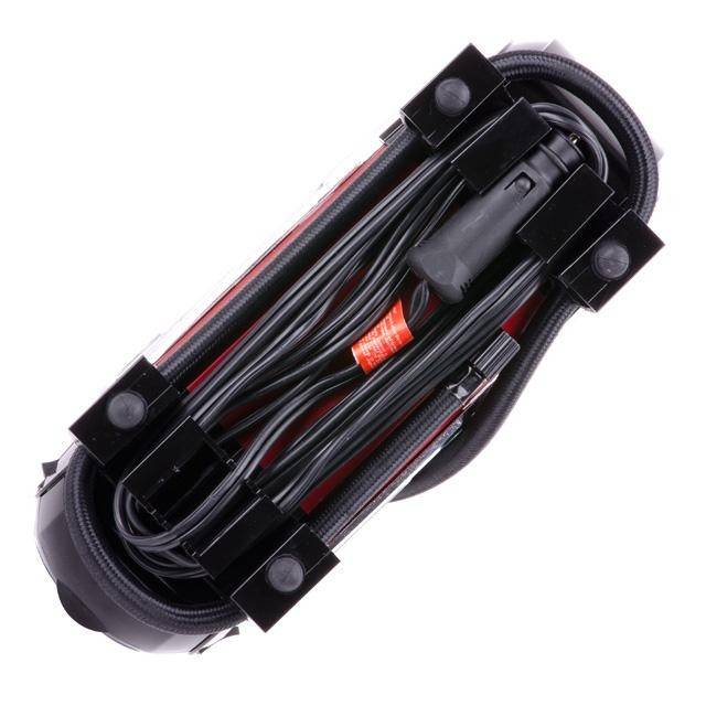 Компресор має дуже скромні габарити, тому разом із комплектом та сумкою поміститися навіть у невеликих багажниках. Живлення здійснюється від прикурювача автомобіля 12 В, тому ви зможете легко накачати колесо в дорозі. Довжина мережевого дроту 3 метри.