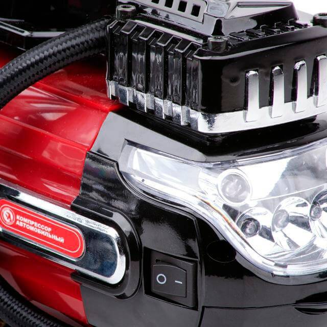 Вбудований LED-ліхтар допоможе зручно накачати колесо навіть у темну пору доби, працює як від прикурювача, так і від батарейок ААА типу.