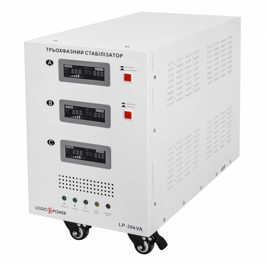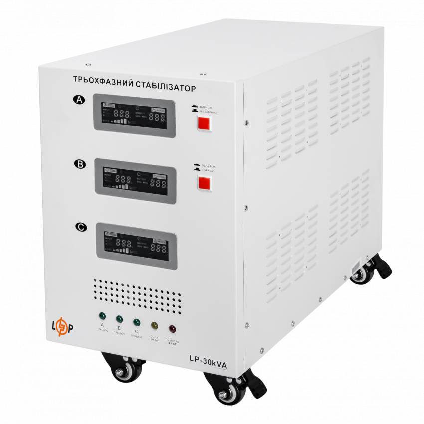 Промислові об'єкти, сучасні житлові комплекси, великі громадські установи та інші масштабні об'єкти, як правило, оснащуються трифазними джерелами подачі живлення електричної енергії з напругою 380V. Сервопривідний стабілізатор напруги LP-30kVA 3 phase (21000Вт) використовується для захисту від перепадів напруги, коротких замикань, імпульсних та інших струмових перешкод в мережах електроживлення такого типу.