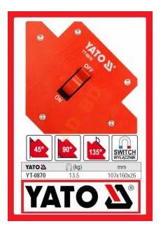 Струбцина магнітна для зварювання з перемикачем YATO: 13.5 кг, 107 х 160 х 26 мм