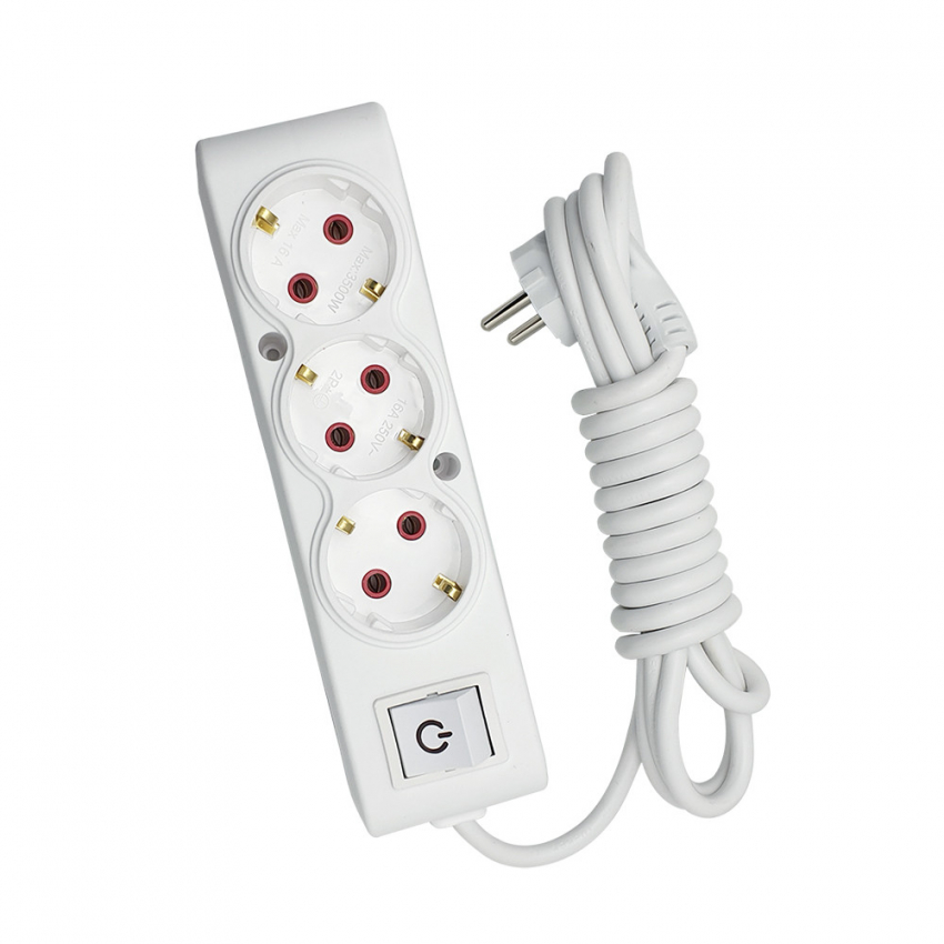 Подовжувачі TECCO призначені для одночасного підключення до електромережі різноманітних приладів - це оптимальний вибір для забезпечення надійного контакту, захисту від дотику до струмопровідних шин, надійної та безперебійної роботи з електричною мережею. Призначені для внутрішніх мереж змінного струму, напругою до 250В - побутова та офісна техніка, професійний та побутовий електроінструмент, освітлювальні прилади та ін. Корпус виготовлено із міцного поліпропілену, що характеризується високою ударною міцністю, зносостійкістю, високими діелектричними показниками. Всередині спеціальний блок червоного кольору з матеріалу, що не підтримує горіння (захист до 850⁰С), який служить опорною оболонкою для контактних груп і захищає виріб від перегріву та термічного руйнування в аварійних ситуаціях. Струмопровідні шини - із латуні. Застосовується гвинтове кріплення кабеля. Наявна можливість кріплення до опорної поверхні. Кількість розеток із заземленням: 3. Максимальний струм навантаження: 16А. Колір: білий. Довжина дроту 3м. Дріт багатожильний мідний, переріз 3х1,0мм2. Вимикач: є.