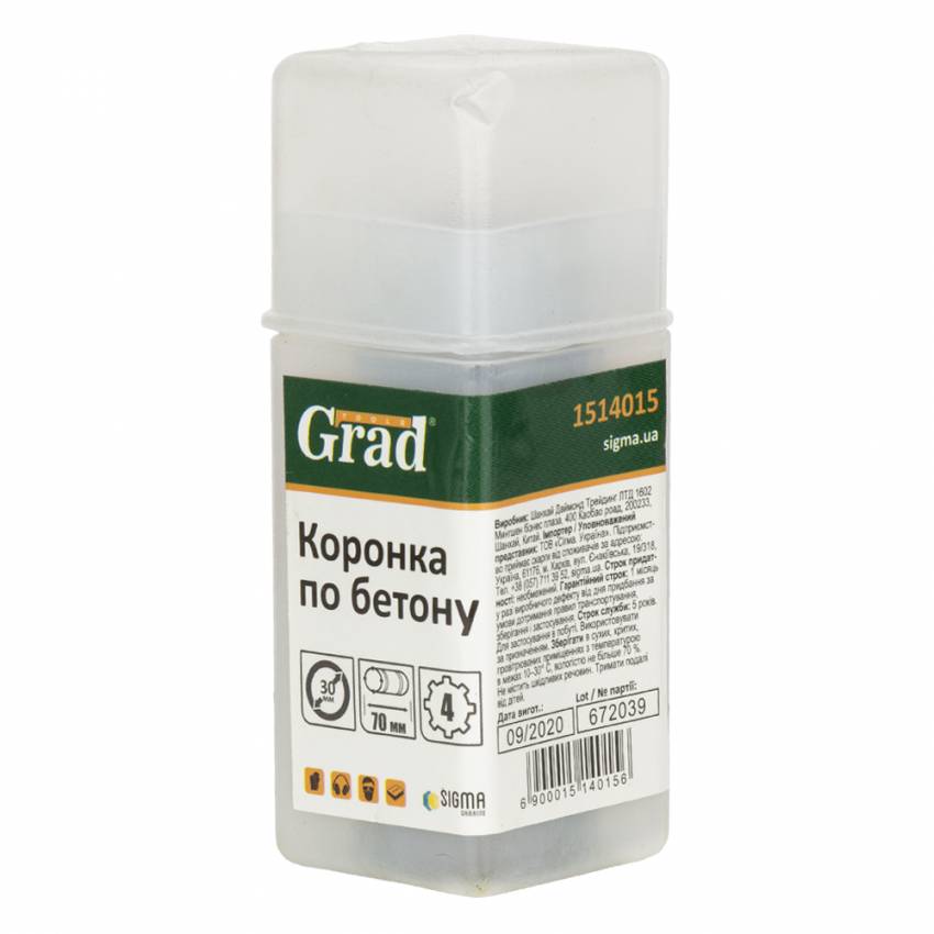 <b>Коронка по бетону Ø30×70мм 4 зубці (тубус) GRAD (1514015)</b> призначена для ударного свердління отворів в бетоні, цеглі, камені, твердих вапняках. Використовують з дрилями і перфораторами потужністю не менше 850 Вт.