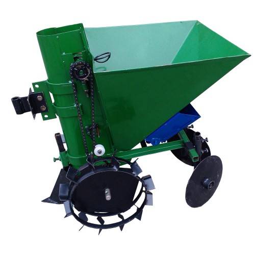 Картоплесаджалка мотоблочна П-1ЦУ забезпечує швидку і ефективну посадку картоплі на попередньо підготовленому ґрунті. Має просту конструкцію, надійний механізм подачі картоплі з ланцюговим приводом, однорядний тип посадки картоплі і місткий бункер ємністю 34 л.