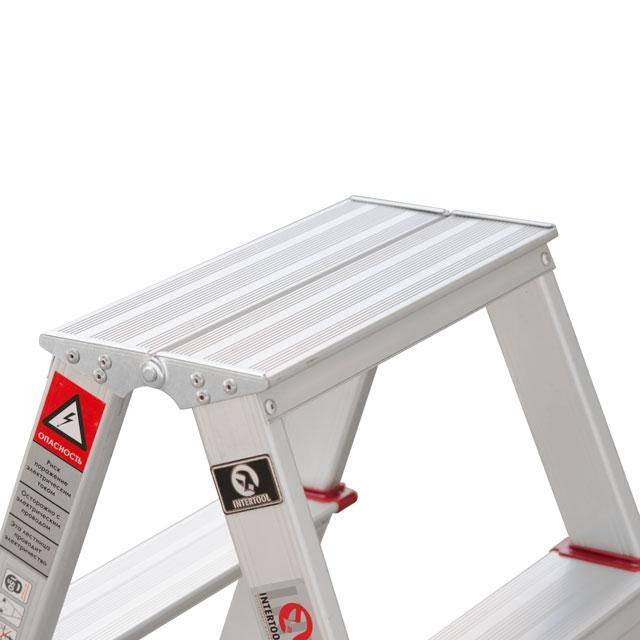 Дві робочі сторони драбини дозволяють одночасно підніматися двом людям. Зручно в тих випадках, коли потрібний доступ до робочої зони з різних боків.