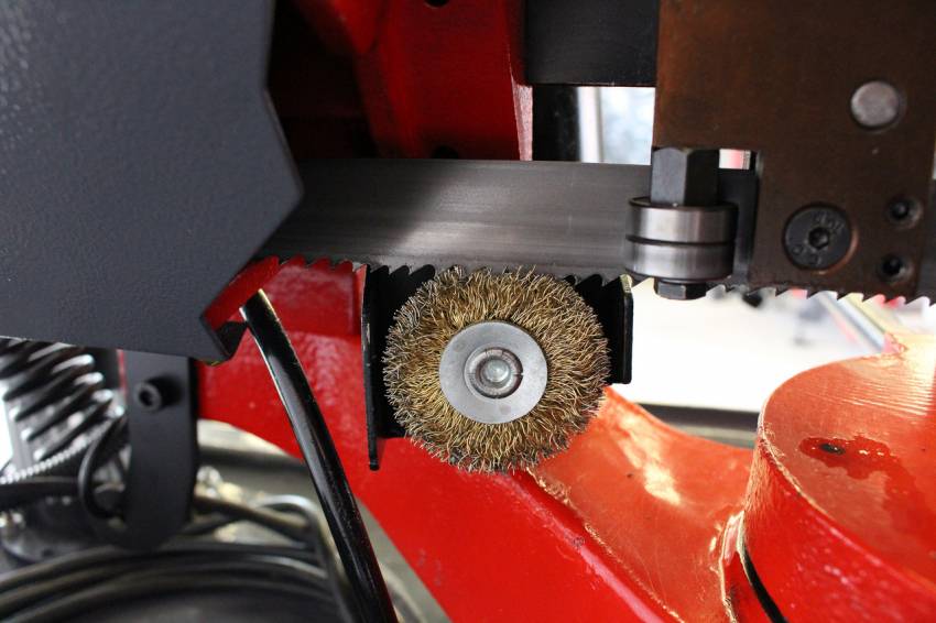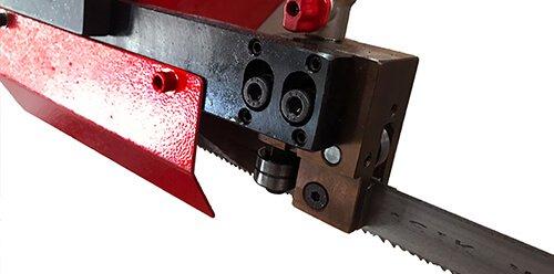 - Твердосплавні напрямні роликові опори пильного полотна, що забезпечує жорсткість і довговічність пилкового вузла;