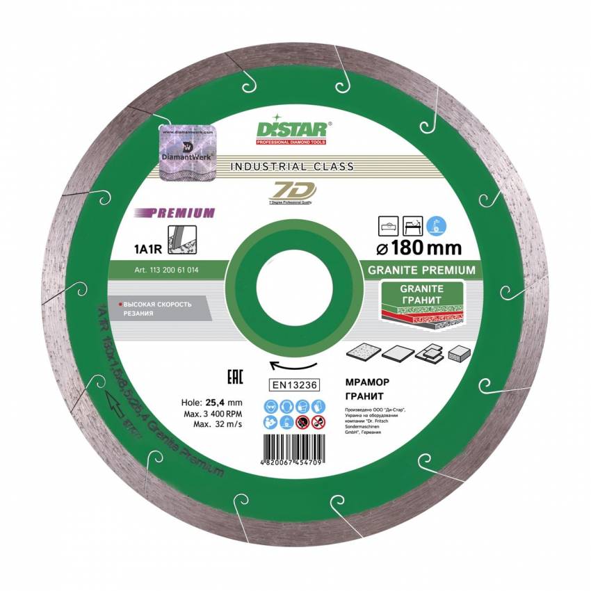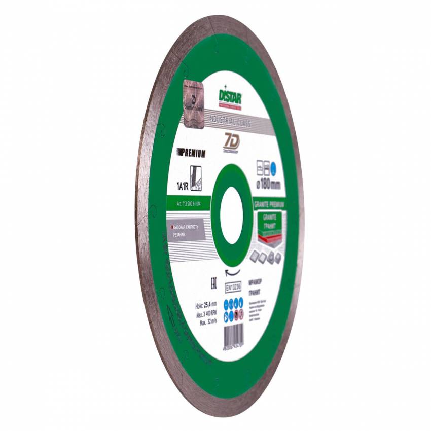 Алмазний диск DISTAR 1A1R GRANITE PREMIUM застосовується професіоналами для різання твердих матеріалів, таких як граніт, мармур і габро. Також допустиме не часте застосування (з перервами) для плитки і керамограніту.