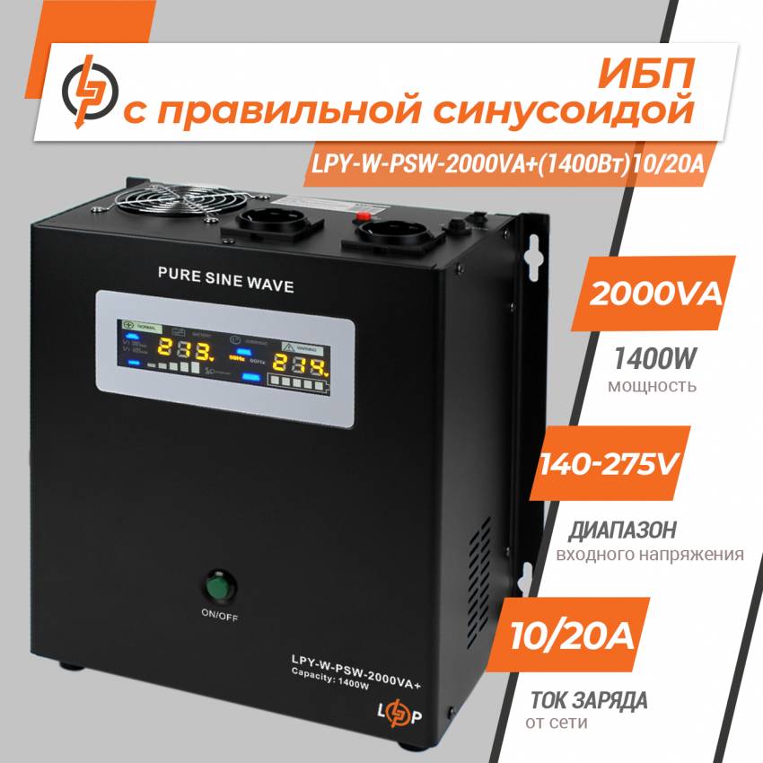 Джерело безперебійного живлення з правильною синусоїдою LPY-W-PSW-2000VA+ (1400 Вт) 24V 10A/20A - це високотехнологічне і багатофункціональне обладнання, за допомогою якого забезпечується резервне електроживлення різноманітних технічних пристроїв та електроніки при раптовому або аварійному вимкненні живлення електромережі. Застосування: - ДБЖ для котла; - ДБЖ для аварійного освітлення. Модель ДБЖ LPY-W-PSW-2000VA+ (1400 Вт) 24V 10A/20A відрізняється високими якісними та технічними характеристиками, завдяки чому зможе успішно впоратися з усіма поставленими завданнями. Джерело безперебійного живлення з правильною синусоїдою LPY-W-PSW-2000VA+ 24V 10A/20A має показник потужності - 2000/1400VA/W і вхідну напругу - 140-275V. Так само, має функції стабілізації напруги та холодного старту. Акумуляторна батарея - зовнішня на 24V (поставляється окремо). Захисний функціонал джерела безперебійного живлення з правильною синусоїдою LPY-W-PSW-2000VA+ (1400 Вт) 24V 10A/20A має наступні типи захисту: від короткого замикання, перевантаження, перенапруги в мережі, розряду і надлишкового заряду батарей, високої або низької напруги. Вибір ДБЖ з правильною синусоїдою LPY-W-PSW-2000VA+ (1400 Вт) 24V 10A/20A - є оптимальним рішенням для забезпечення безперебійної роботи Вашої електроніки, комп'ютерної або побутової техніки та збільшення терміну її служби.
