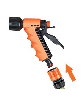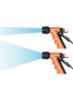 Пістолет розпилювач, ергономічної форми, з регулюванням потоку води та 2-ма типами струменю, для будь-яких потреб поливу. Компактний і міцний, простий і зручний в обігу, він дозволяє в будь-який час регулювати струмінь води і фіксувати положення важеля регулювання за допомогою відповідного механізму, що дозволяє уникнути напруги в руці, особливо в разі тривалого використання