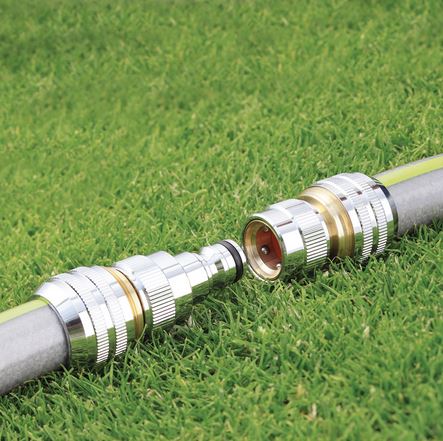 Автоматичне з’єднання для шлангів діаметром 3/4” (19-25 мм) з хромованої латуні. Постачається з автоматичним запірним клапаном для води. Встановлюється на кінці шланга. Від’єднайте муфту, щоб зупинити потік води. Оснащений 6 внутрішніми підшипниками, що гарантують автоматичне з'єднання та ідеальне ущільнення.