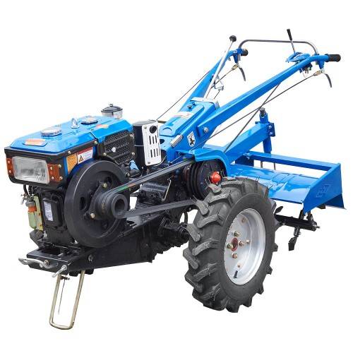 Моделі з індексом «Д» мають тільки ручний запуск двигуна. Моделі з індексом «ДЕ» оснащені електростартером, що значно спрощує запуск, особливо за низької температури довкілля. Крім електростартера до комплекту електрообладнання входить акумуляторна батарея, замок запалювання, амперметр і вимикач маси. Розміщується електрообладнання в міцному металевому боксі, встановленому на кермі мотоблока. Мотоблоки з ручним запуском можна самостійно дообладнати та встановити на них електростартер. Однак така операція потребує не тільки додаткових фінансових вкладень на придбання комплектувальних елементів, зокрема на заміну маховика, але й достатню технічну кваліфікацію установника,оскільки необхідне часткове розбирання мотоблока.
