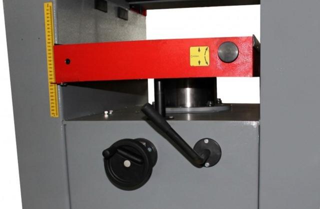 Підйом і опускання столу здійснюється за допомогою маховика з лічильником і його фіксацією рукояткою |
