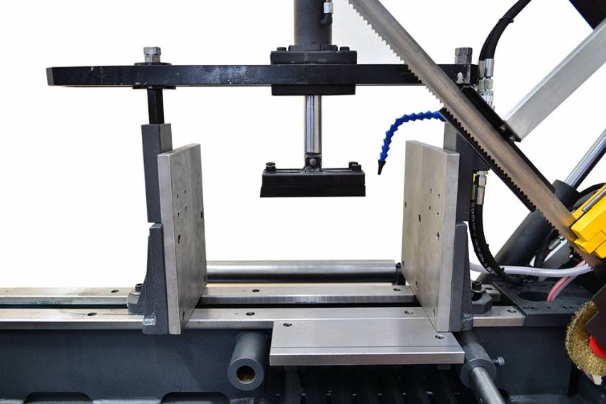 Верстат для різання профілів напівавтоматичний стрічкопильний BMSY 320 від турецького виробника Beka-Mak має довжину стрічкового полотна 3660 мм, висоту робочої поверхні 640 мм і швидкість різу 20-100 м / хв.