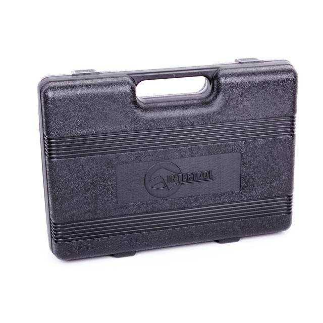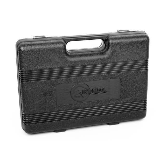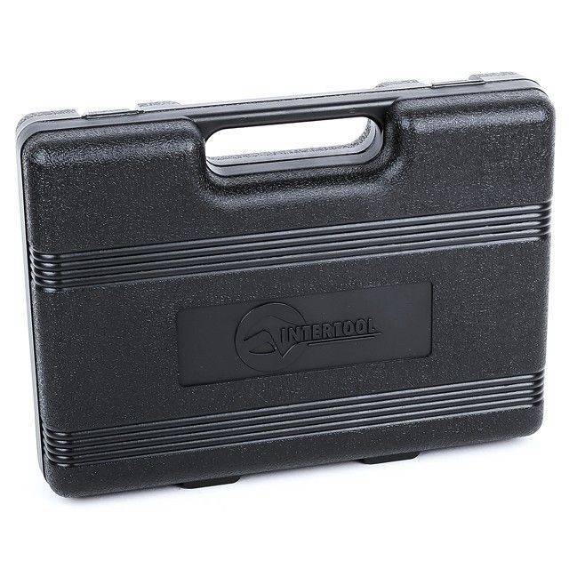 Кейс виготовлений з міцного пластику та вміщує весь комплект набору для зручного зберігання та транспортування. Інструменти щільно зафіксовані у своїх посадкових місцях, а наявність поролонового прошарку не дозволяє висипатися набору під час транспортування.