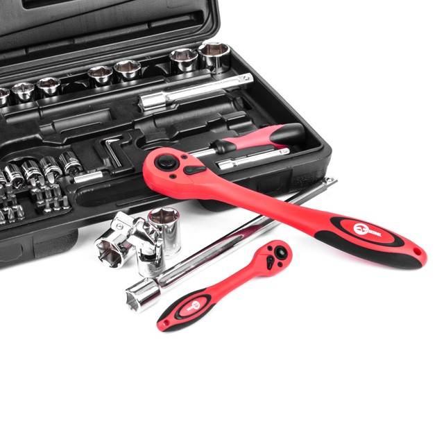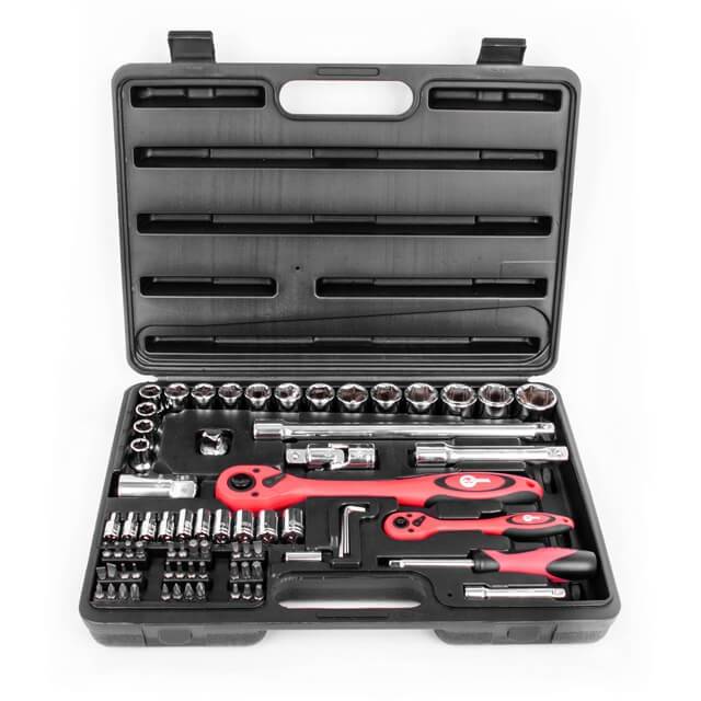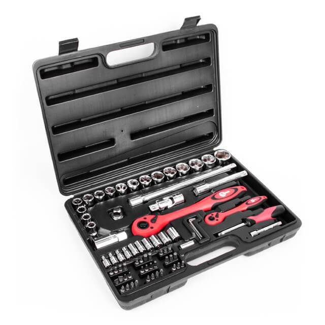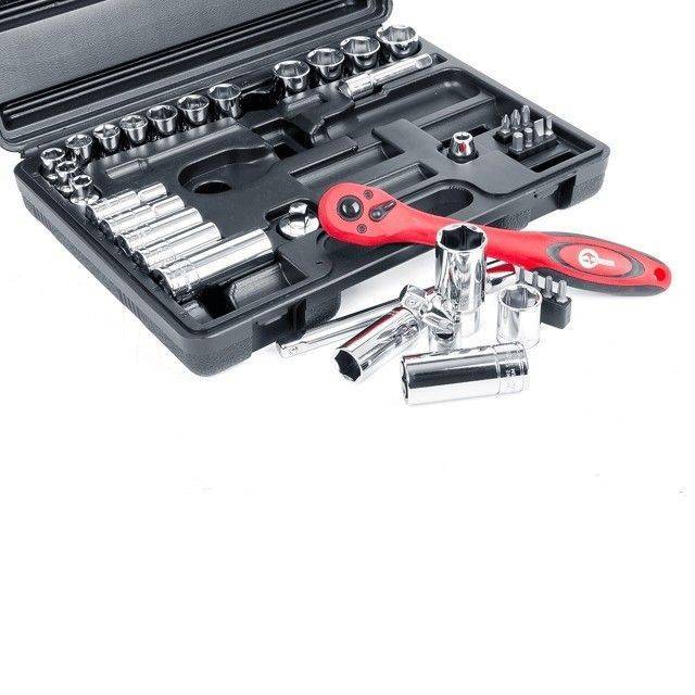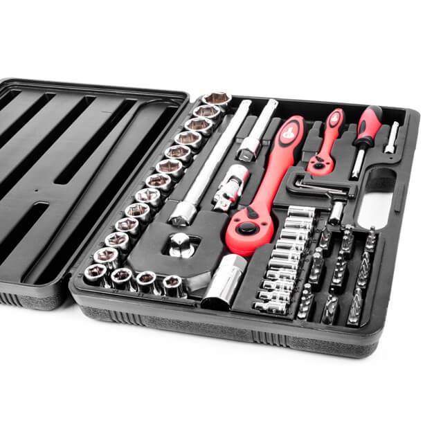 Основою комплекту є дві тріскачки з приводом 1/2' та 1/4', шестигранні головки, 12 ріжково-накидних ключів зі збалансованим руків'ям, підходять для виконання різнопланових робіт на закручування та відкручування кріплень.
