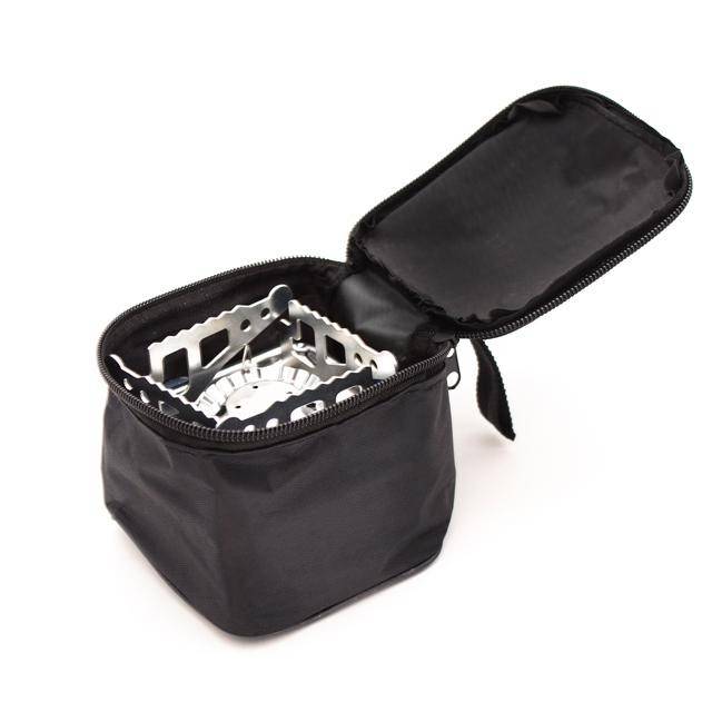 Для зручнішого транспортування передбачений чохол з тканини. Пальник компактно складається і не займає багато місця у рюкзаку чи сумці. Поставити пальник можна на будь-яку поверхню, три складані ніжки з упором для кращої стійкості.