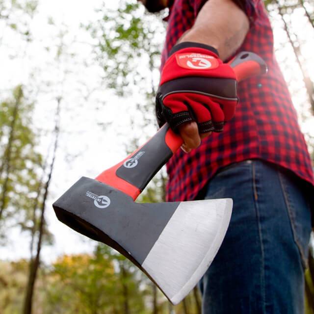 Сокира не вислизає з рук навіть у дощову погоду завдяки гумовим вставкам та невеликому вигину ручки. Спеціальна анатомія сокири із системою гасіння вібрацій зменшує силу віддачі.