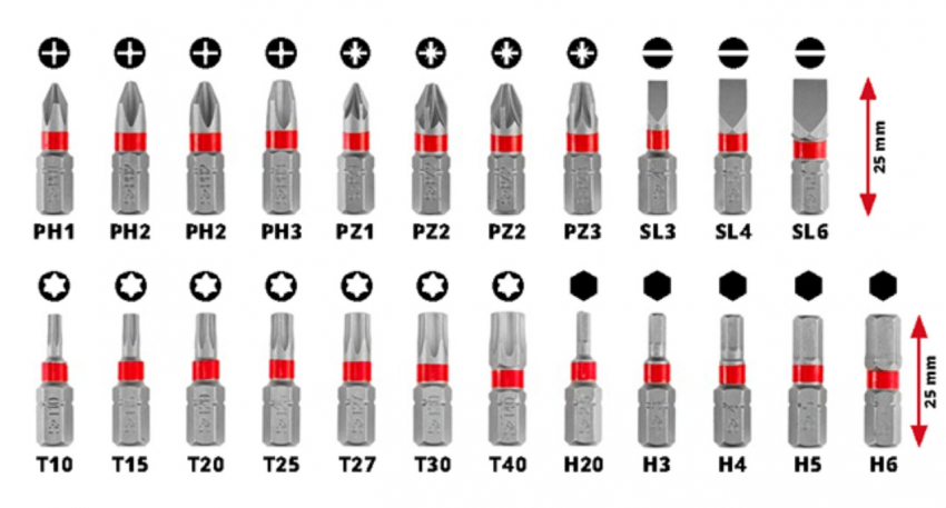 23 біти (25 мм) з хвостовиком C 6.3 з піскоструминної сталі S2