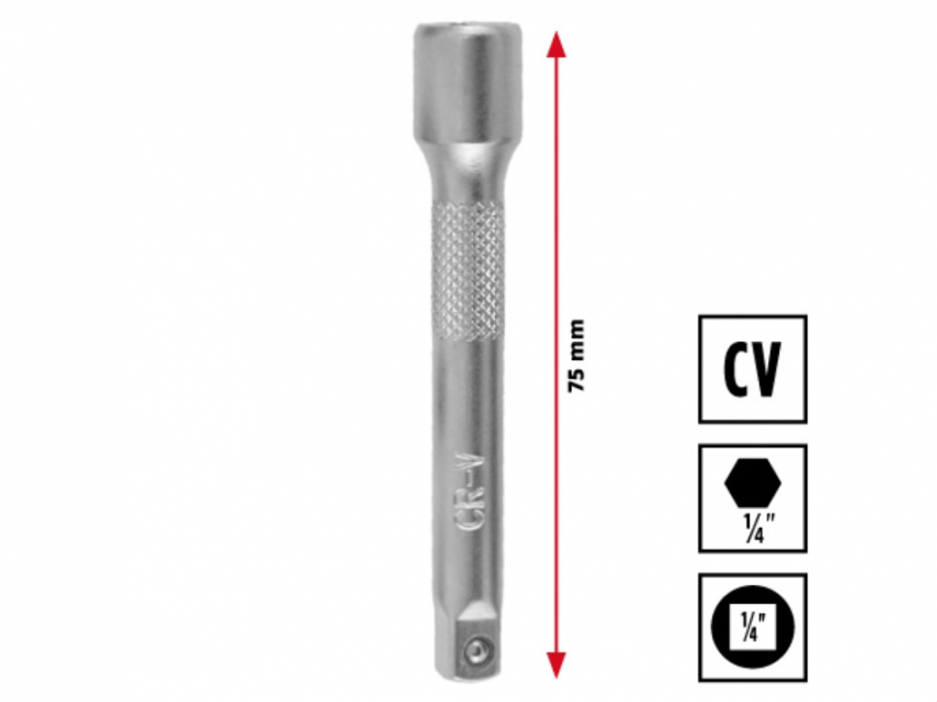 1 подовжувач для головок (75 мм) зі сталі CV, матовий хром