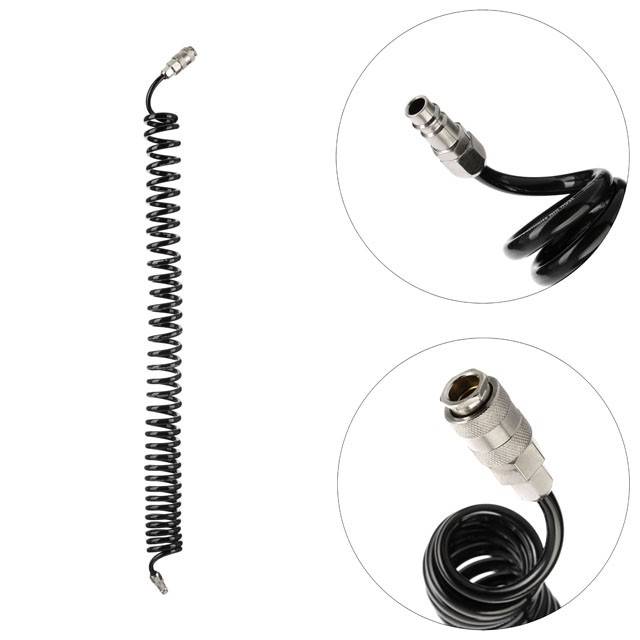 Шланг повітряний з поліуретану використовується для повітряних магістралей пневматичного обладнання. Шланг дуже гнучкий та здатний розтягуватися до 5 метрів, а у згорнутому вигляді займає мінімум місця, не плутається під ногами. Виготовлений з поліуретану, він дуже легкий, стійкий до стирання, зносу, мастил та жиру. Стіни шланга витримують робочий тиск до 15 атм. Завдяки спеціальним спіральним обмежувачам на кінцях шланга забезпечується цілісність виробу, він захищений від заломів та можливих пошкоджень. Стійкий до низьких температур, не твердне на морозі та залишається таким же гнучким.