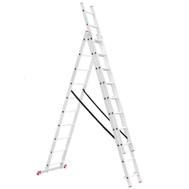 Складана трисекційна драбина стане у пригоді в будь-якій ситуації як професійним майстрам для роботи на висоті, так і для побутових потреб, а також працівникам складів, магазинів тощо. Драбина універсальна і підходить під будь-які завдання, максимальна висота становить 6,77 метрів, при цьому вона може трансформуватися в будь-яке з чотирьох положень. Зручна для використання в домашньому господарстві, наприклад, замінити лампочки, пофарбувати стіни, помити вікна, також її можна використовувати як сходи для дах та ін.
