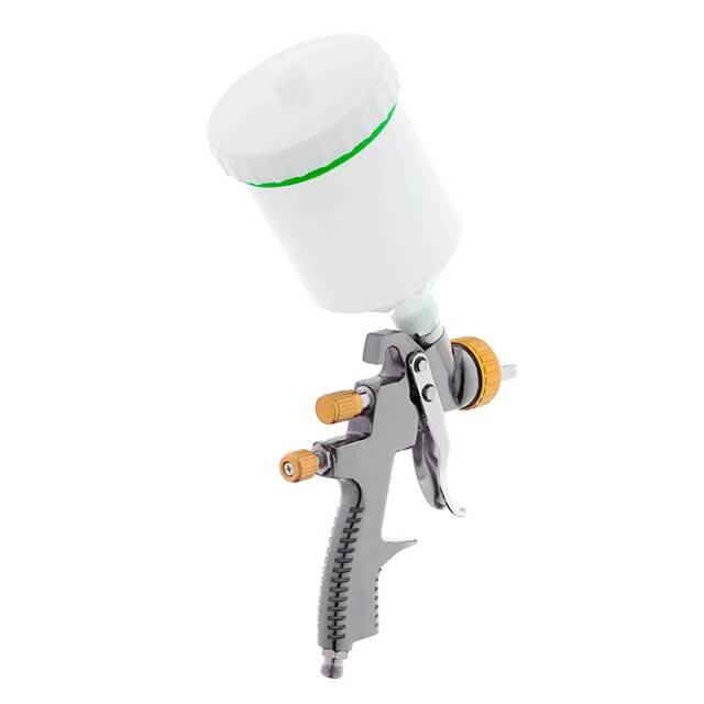 Оснащений пластиковим бачком об’ємом 600 мл, завдяки чому можна візуально контролювати рівень фарби, що дуже зручно. За необхідності бачок можна замінити на аналогічний PT-1901 або металевий PT-1906.