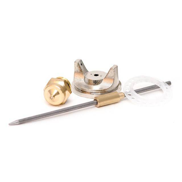 Набір форсунки PT-2005 дозволяє відновити роботу фарбопульта, а також може збільшити його функціонал завдяки діаметру форсунки 1,8 мм. Набір спеціально розроблений для фарбопультів системи HP. Цей комплект включає важливі елементи: дюзу, повітряну головку, голку і прокладки, надаючи повний інструментарій для ефективного нанесення фарби.