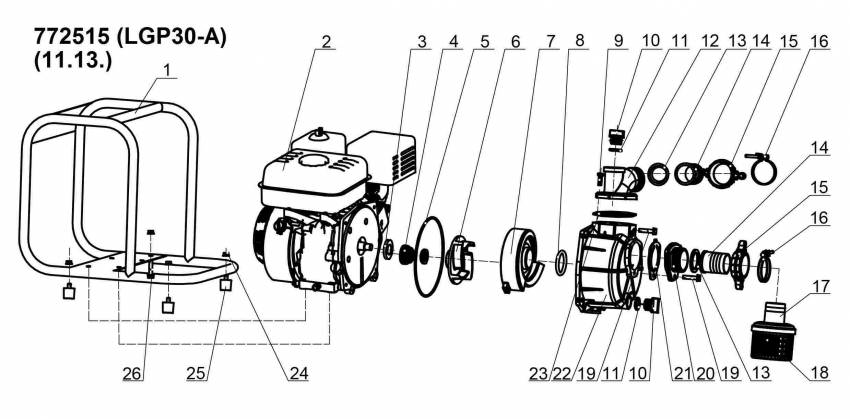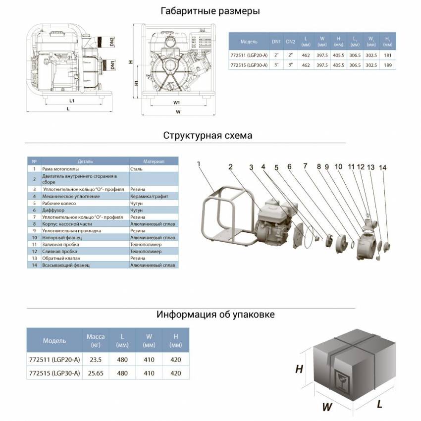Мотопомпа 6,5л.с. Hmax 30м Qmax 60м³/год (4-х тактний) LEO (772515) Застосовується в різних галузях сільського та лісового господарства, промисловості, будівництва тощо. Діапазон використання охоплює всі процеси від зрошення сільськогосподарських ділянок до викачування дренажних вод, засмічених піском та мулом (при обов'язковому встановленні фільтра на всмоктувальний трубопровід для запобігання попаданню частинок, здатних вивести з ладу насосну частину мотопомпи), подачі великих обсягів води для гасіння пожеж, а також відкачування води з колодязів під час робіт у міських та комунальних службах. Насосна частина: Корпус: алюмінієвий сплав; Робоче колесо: чавун із антикорозійною обробкою; Дифузор: чавун із антикорозійною обробкою. Двигун внутрішнього згоряння Тип двигуна: одноциліндровий чотиритактний бензиновий, повітряного охолодження; Номінальна потужність: 6.5 л.с. (4.0 кВт); Робочий об'єм двигуна: 196 куб. Максимальні обороти колінчастого валу: 3600 об/хв; Витрата палива: до 395 г/кВт*год. Умови застосування: Максимальна температура довкілля: 40ºC; Максимальна температура рідини, що перекачується: 40ºC; Максимальна висота всмоктування: 8 м; Тільки для чистої води без абразивосодержащих домішок (піску, глини, вапна тощо); Водневий показник води (рН): 6,5 – 8,5; Загальна мінералізація води: трохи більше 1500 г/м; Термін гарантійного обслуговування: 12 місяців. Комплектація: Ключ свічковий; Ущільнювальне прокладання; Затискач (хомут); Сполучний патрубок; Фільтр грубої очистки. Купити мотопомпу LEO Ви можете, оформивши замовлення у нашому інтернет-магазині за допомогою простої форми, доставка здійснюється по всій Україні. Якщо у Вас виникли запитання, Ви можете зателефонувати за вказаними номерами або замовити зворотній дзвінок. Спеціалісти нашого інтернет-магазину нададуть Вам детальні консультації та допоможуть зробити правильний вибір.