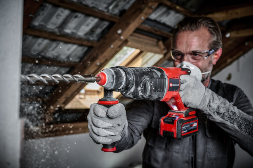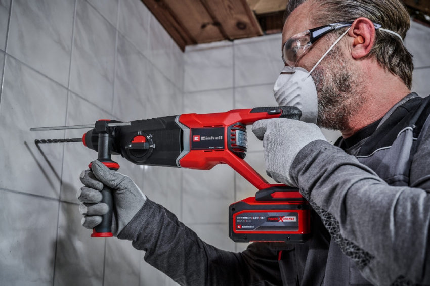 Інструмент серії Power X-Change Безщітковий двигун - більша потужність і довготривалість Функція плавного пуску для збереження двигуна 4 режими: Свердління/свердління з ударом/довбання з/без фіксації Пневматичний ударний механізм для легкого свердління у бетоні Універсальний патрон SDS-plus з полуавтоматичним режимом Електронне регулювання швидкості Ергономічні м'які накладки на корпусі для комфортної роботи Рукоятка закритої форми для полегшення буріння у горизонтальних поверхнях Металевий обмежувач глибини буріння LED підсвічування для освітлення робочої зони Для оптимальної роботи рекомендується акумулятор ємністю 3 Аг і вище Поставляється в пластиковому кейсі E-Case Поставляється БЕЗ акумулятора і зарядного пристрою Акумуляторний перфоратор Einhell Professional TP-HD 18/26 D Li BL - Solo - справжній універсал. Він поєднує в собі чотири функції в одному інструменті: свердління, ударне свердління та довбання з і без зупинки обертання. Потрібний режим можна встановити за допомогою головного позиційного перемикача. Серцем пристрою є потужний безщітковий двигун Einhell PurePOWER. Цей безщітковий двигун забезпечує більшу потужність і довший час роботи, ніж звичайні двигуни з вугільними щітками. Акумуляторний перфоратор є частиною сімейства Power X-Change, що дозволяє гнучко поєднувати акумулятори, інструменти та зарядні пристрої. Пневматичний ударний механізм забезпечує ударну силу до 2,6 Дж. Завдяки високій продуктивності свердління інструмент може свердлити отвори діаметром до 26 мм у бетоні. Спеціально розроблена D-подібна ручка дозволяє легше свердлити та довбати горизонтальні поверхні, напр. підлоги. Це означає, що перфоратором можна безпечно керувати та застосовувати правильний тиск. Універсальний напівавтоматичний патрон SDS-Plus забезпечує просту та швидку заміну аксесуарів. Швидкість можна точно регулювати відповідно до поточної роботи. Завдяки ергономічній частині ручки з м’якою накладкою перфоратором комфортно працювати. Міцний обмежувач глибини свердління для точного свердління плавно регулюється. Акумуляторний перфоратор TP-HD 18/26 D Li BL оснащений світлодіодним підсвічуванням для оптимального освітлення робочої зони. Інструмент поставляється в практичному кейсі E-Case для транспортування та зберігання. Поставляється без акумулятора і зарядного пристрою, вони доступні окремо. Для оптимальної роботи рекомендуємо використовувати акумулятор ємністю 3,0 Аг чи більше.