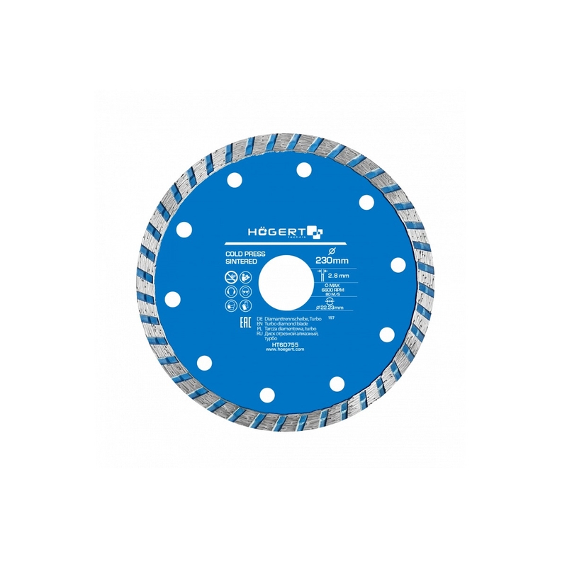 Диск алмазний turbo по асфальту, бетону керамиці HOEGERT 230 HT6D755